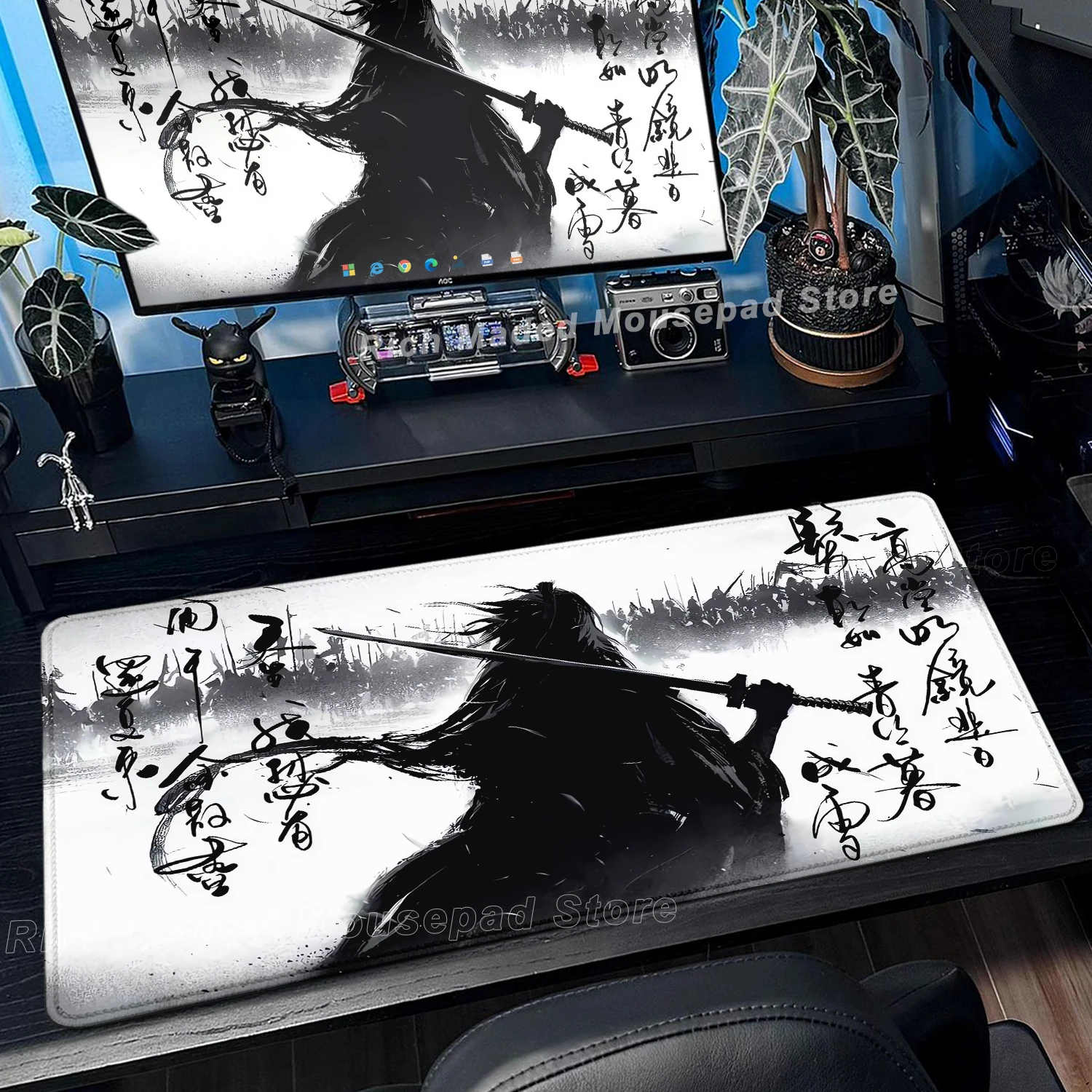 Japanese Sakura Samurai Black Mouse Pad